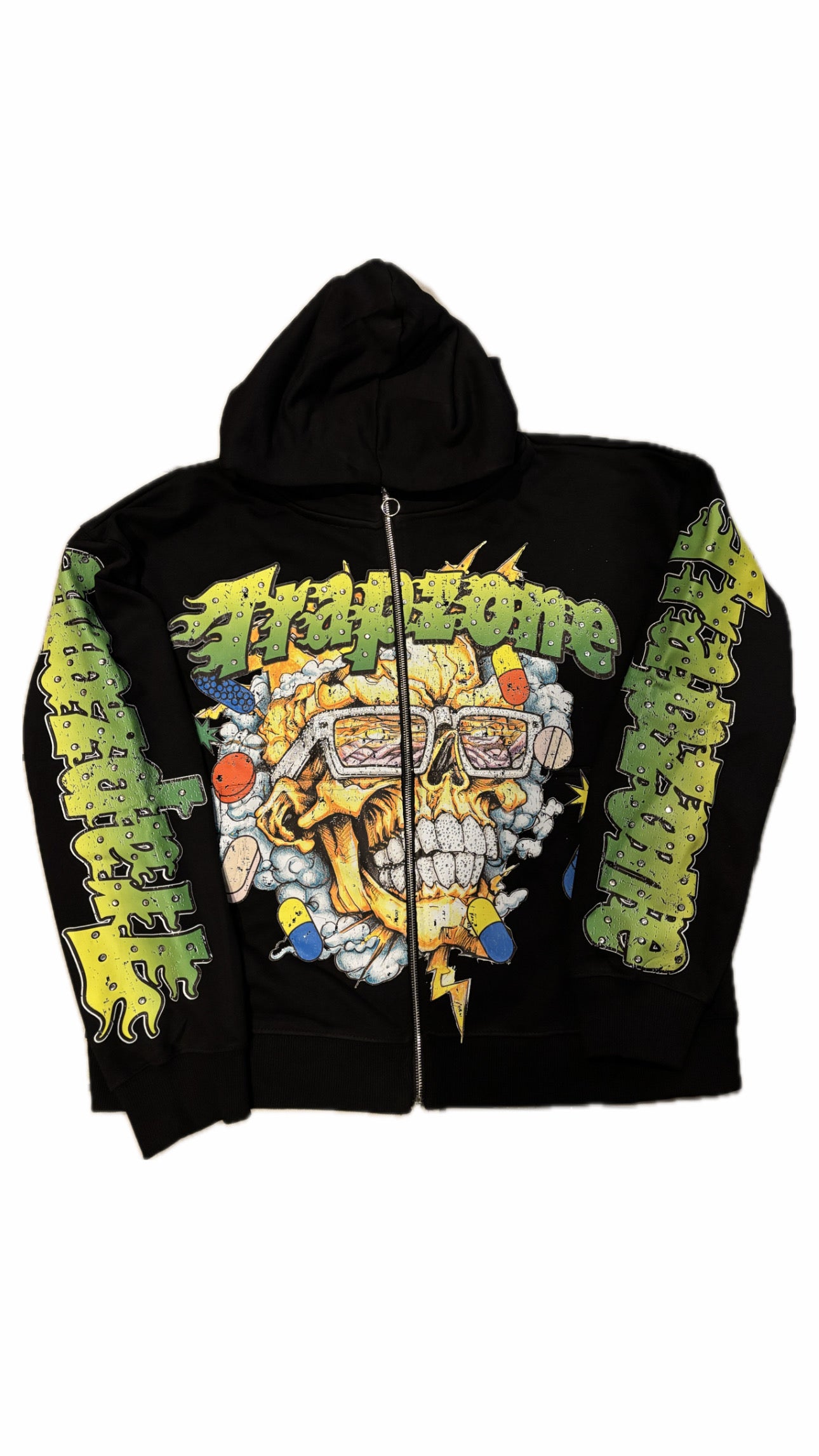 “Trapzone is for the streets, the hustlers, and the dreamers — built from grind, powered by people. Every design tells a story through hand-placed rhinestones and bold graphics that redefine street fashion worldwide.”